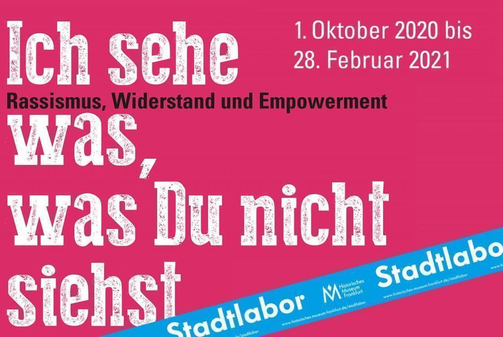 In öffentlichen Diskussionen zu Rassismus und Kolonialgeschichte wird die Sichtweise von betroffenen Menschen oft kaum beachtet. Doch genau diese Perspektiven macht die Stadtlabor-Ausstellung im Historischen Museum Frankfurt sichtbar. „Ich sehe was, was Du nicht siehst“ zeigt verschiedene Formen von Rassismus und deren Auswirkungen auf Betroffene, aber auch die vielfältigen Selbstermächtigungsstrategien, um Rassismus zu bekämpfen.